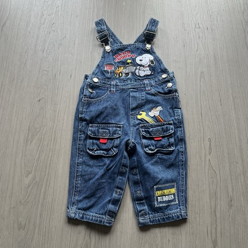 Vintage Baby Snoopy Work Zone Construction Size 12M Denim Baby Toddler Overalls