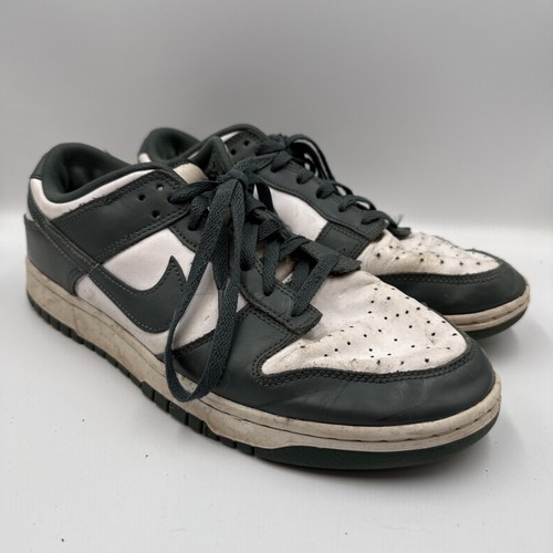 The Nike Dunk Low 'Vintage Green' DV0833-111 Men's Sneakers in size 11 are a stylish and comfortable choice for casual occasions during the spring season. Featuring a solid green color with a white and vintage green upper, these sneakers have a rubber outsole for durability and a low top design for a modern look. Made with leather upper material and a foam insole, these athletic shoes are perfect for basketball performance. With the iconic Nike Dunk model and brand, these sneakers are a trendy addition to any man's shoe collection.