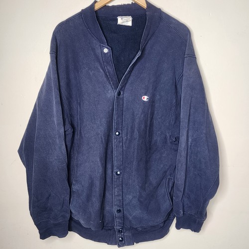 Vtg Champion Reverse Weave Warm Up Sweatshirt Cardigan Style Jacket Size XL USA Made Distressed Faded Navy Blue Perfect Vintage distressed grunge skater look Fraying at the neck sleeve cuffs and bottom hem Measurements in photos Shipped out same business day!