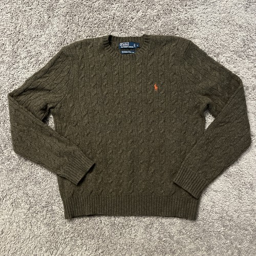 Vtg Polo Cable Knit Sweater Mens L Green Merino Wool & Rabbit Hair