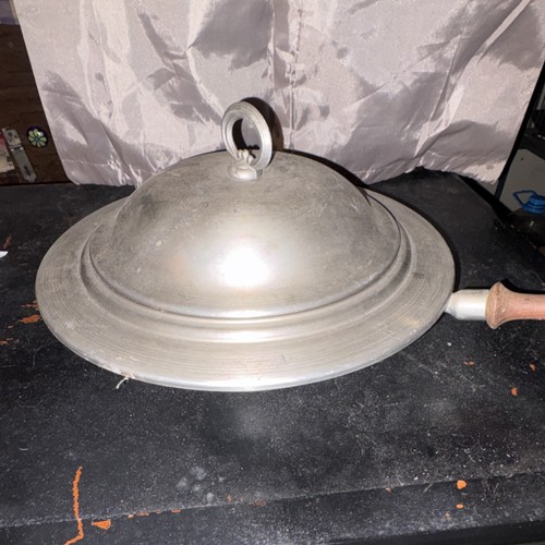 Vintage Aluminum Serving Dish Pan with Lid and Wooden Handle Retro Kitchenware