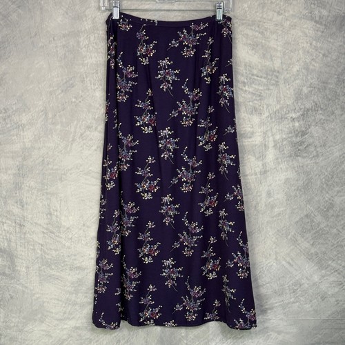 cottagecore, 90s grunge, feminine, romantic, Vintage-inspired maxi skirt crafted from soft, lightweight rayon with an elegant floral sprig pattern throughout. This long-line piece features a comfortable partially elasticized waistband at the back with a discreet side zipper and button closure for a secure fit. The deep purple base provides a rich backdrop for the delicate blue, red, and yellow floral motifs, making it a versatile choice for cottagecore or classic aesthetic styling. I ship within two business days We are a smoke free home Measurements are typically provided in the photos Any flaws will be noted in the description and in the photos