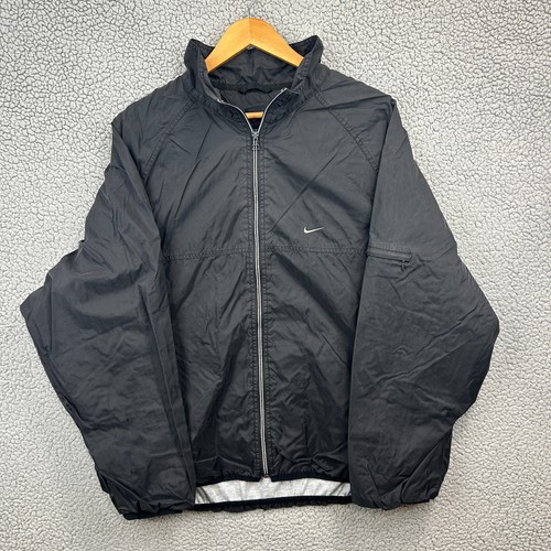 VTG Nylon Windbreaker Swoosh Logo Mens Track Jacket Black Red Check