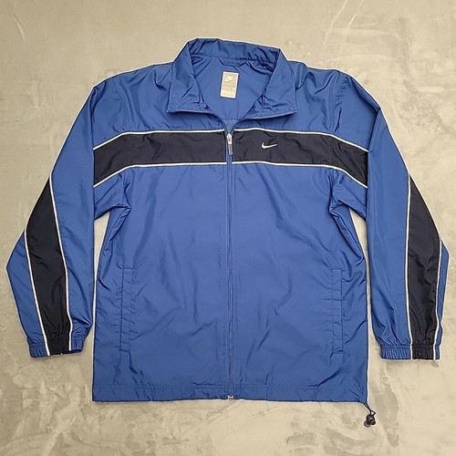 VTG Jacket Mens M Blue Zip Center Swoosh Back Track Warmup 90s Y2K Gray Tag