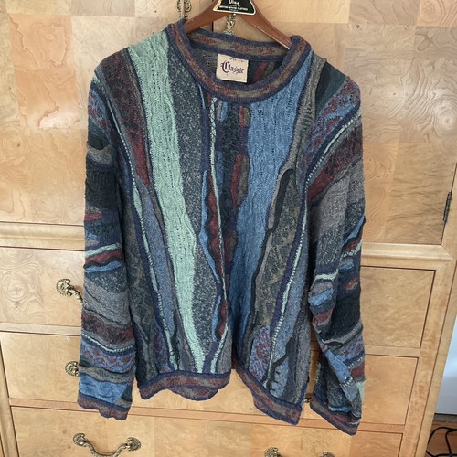 The Coogi Australia Classic Men's Sweater in size L is a timeless and stylish piece of men's clothing. Made by the renowned brand COOGI, this sweater is designed with a classic theme in mind. The regular fit and high-quality materials make it a versatile and comfortable option for both casual and formal occasions. Perfect for adding a touch of sophistication to any outfit, this sweater is a must-have for any man's wardrobe. This coogi sweater has been worn but still lots of wear left in it. It is made of 40% linen and 60% Cotten. 5here are some loose threads and pilling but no holes or rips. Keep in mind that this is vintage and has been worn but still beautiful.