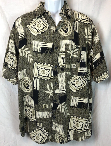 Summa Hawaiian Shirt L Brown Tropical Button Front Short Sleeve Collar Rayon. Chest : 48 " Length: 29 ".