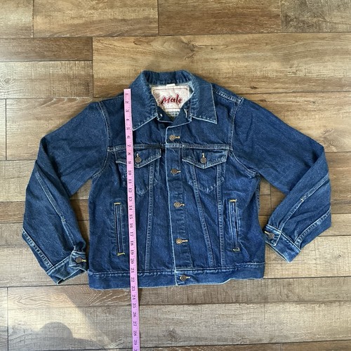 The VTG Male Denim Trucker Jacket in size 42 is a classic piece of men's outerwear made of 100% cotton denim in a solid blue color. This vintage jacket features a button closure, collared neckline, and lightweight design, making it suitable for casual, travel, or workwear occasions. With a retro 90s grunge theme and accents like embroidered logos, it adds a stylish touch to the wardrobe of any man looking for a versatile and timeless piece. Made in Mexico, this jacket is machine washable and perfect for the winter, fall, and spring seasons.