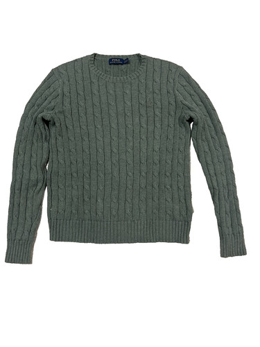 Vintage Polo Cable Knit Sweater Olive Cotton Crewneck Logo Men S