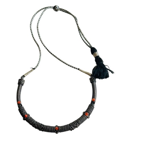 VTG Tribal Oxidized Necklace glass cabochon BOHO Tibetan Ethnic Nepal Silver 26" Measures 26 in L MANNEQUIN IS LIFE SIZE Stunning high end fine Stone beaded necklace natural genuine Beads Great condition Authentic over the head necklace LETS MAKE A DEAL SEND US AN OFFER combine shipping available Questions welcomed