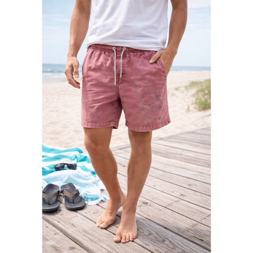 American Eagle Outfitters Next Level Flex shorts in a faded burgundy or dark rose wash. These pull-on shorts feature an elastic waistband with an adjustable drawstring for a comfortable, custom fit. Designed with a classic 4-pocket styling and a versatile 7-inch inseam, they offer a relaxed, beachy aesthetic perfect for summer outings or casual weekends. The fabric has a soft, broken-in feel with a slight stretch for added mobility. Condition: washed with ink pen and noticeable blue marks. See pics. Measurements: • Waist: 16" (32" doubled) • Inseam: 7" • Outseam: 17"