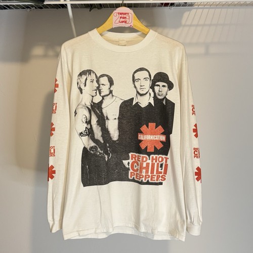 Vintage 1999 Red Hot Chili Peppers Californication Tour Long Sleeve T-Shirt; a must-have for any rock fan or vintage collector. This authentic tour piece features the iconic band photo on the front and North American tour dates on the back. Classic sleeve hits including the RHCP asterisk logo and band name Specifics: -measurements : 20.5”x28” - Period: 1999/2000 tour band - Style: Long sleeve graphic tee - Graphics: Band photo, Californication logo, sleeve prints, tour cities back print Good condition