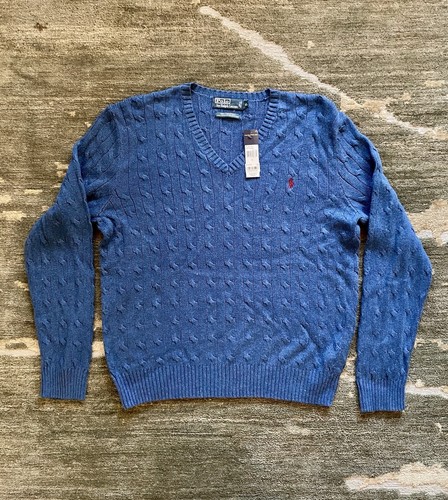 Vintage Polo 90s Y2k Deadstock Sweater Men XL Blue Silk Cable Knit