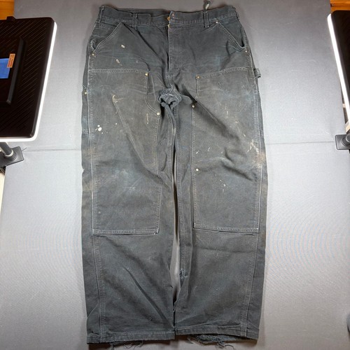 Vintage B136 BLK Double Knee Duck Canvas Work Pants Black Faded 38x32