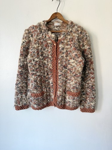 VTG 50s 60s Hand Knit Chunky Wool Mohair Cardigan Sweater. Condition is Pre-owned - Good. Shipped with USPS Ground Advantage.