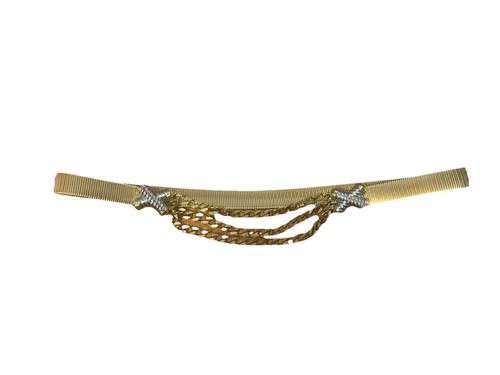 Vintage Accessocraft NYC Gold & Silver X’s Gold Chunky Triple Chain Belt Stretch. Condition is Pre-owned - Good. Shipped with USPS Ground Advantage.