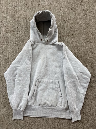 Vtg CHAMPION LandsEnd Cotton 80s REVERSE WEAVE GRAY HOODIE SWEATSHIRT L Made USA