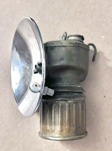 The Vintage Coal Miners Justrite Lamp with a large 7" deflector is a unique and collectible piece of mining equipment, originating from the United States. This carbide light would have been used by coal miners to provide illumination in underground mines, showcasing the craftsmanship and history of mining operations in the past. Its design and functionality reflect the conditions and challenges faced by miners during that time period, making it a valuable artifact for collectors or those interested in the history of mining technology.