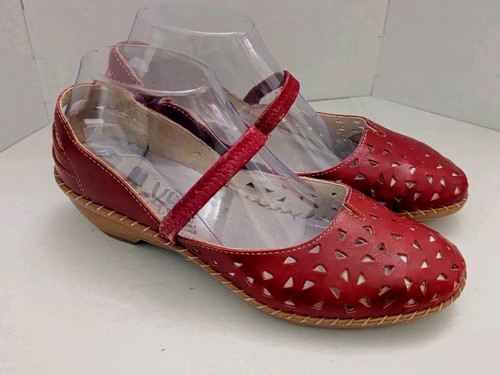Ideal for those who appreciate a blend of retro, boho, and hippie-inspired styles, these red heels from Rieker are a versatile addition to any wardrobe. The color of the shoes is darker than it appears in photos.