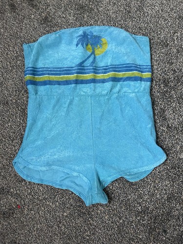 Women’s vintage 80s sleeveless palm tree one piece bathing suit size medium a true piece of history