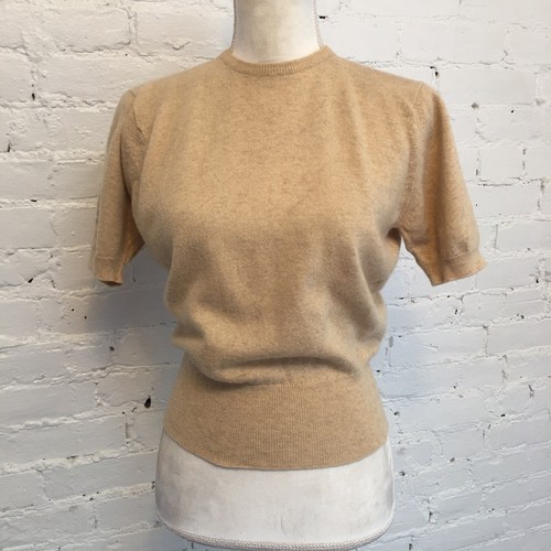 A third at front has been repaired. last three photos. fitted style in shorter length. in otherwise good shape with light wear and no pilling. note: has two tiny holes - one at hem, one at back right.