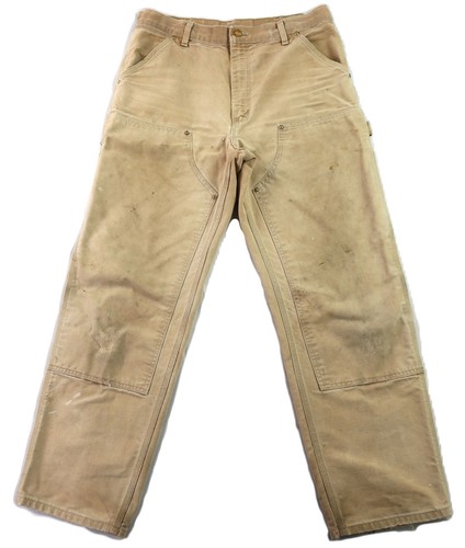 Vintage 90s B01 USA Men's 33 x 30 Brown Double Knee Pants DISTRESSED