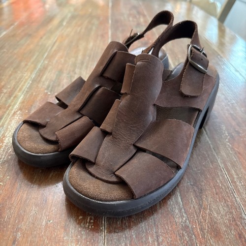 Preloved brown leather fisherman sandals with chunky heel, approximately size 9 These are heavy and look like high quality, but unfortunately the brand and size have worn off. Based off measurements I am approximating size around a women’s 9 There is some scuffing/scratching on these- see photos Vintage Fisherman Sandals, Brown Leather Chunky Sandals, 90s Platform Sandals, Caged Gladiator Shoes, Grunge Aesthetic, Lug Sole Sandals, Adjustable Buckle Strap, Dark Brown Leather, Retro Summer Footwear, BoHo Hippie Sandals