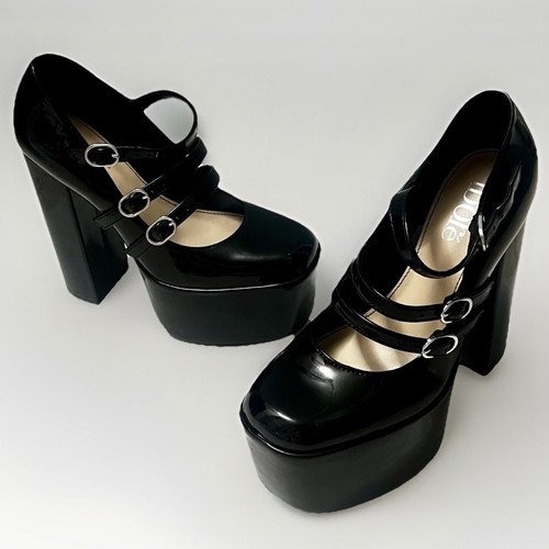 Features: Mary Jane style. Patent-like upper. Synthetic lining. 5.5” Block Heel. 2” Platform Height. Synthetic Outsole. Made in Brasil.