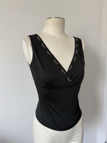 Vintage Y2K rhinestone star black vneck blouse sleeveless top Whimsygoth celestial 90s Reality Size medium Chest: 15.5in Length: 19in #2000s #whimsi #goth #90s #grunge