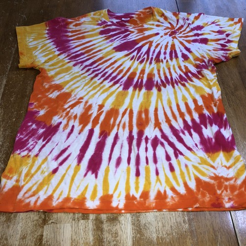 Vintage 80s Tie Dye Orange Yellow Hanes XL Single Stitch. Condition is Pre-owned. Shipped with USPS Ground Advantage. Item has a couple of small holes but is still in great shape