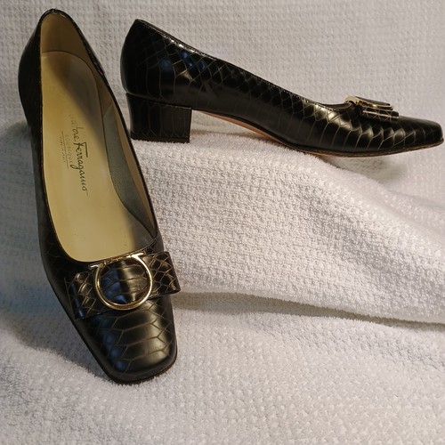 The unusual reptile leather makes them a rare find. These beautiful shoes do show signs of gentle wear. But mostly on the inside and on the soles. See photos.