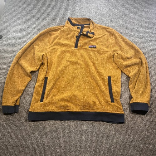 Vintage Synchilla Snap T Fleece Pullover Mustard Navy Mens Large