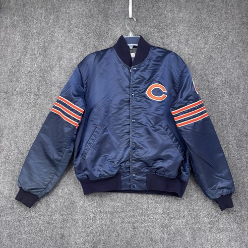 VINTAGE NFL Pro Line Blue Satin Bomber Jacket Kids Large Chicago Bears