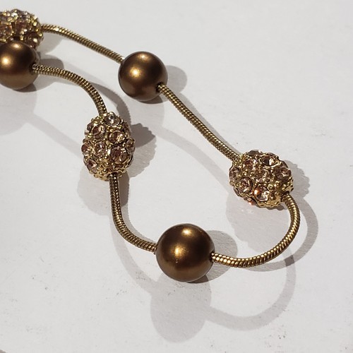 Crystal Studded Accents. Bronze Faux Pearls. Gold Toned Chain.
