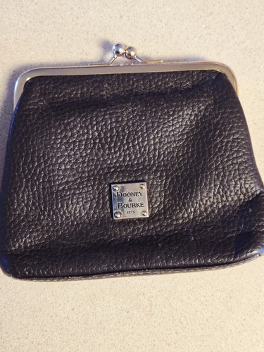 The Vintage Dooney & Bourke Coin Purse is a small, stylish accessory with six card slots and a kiss lock closure. Made with leather and featuring a solid brown exterior with a red fabric lining, this coin purse is perfect for casual occasions. The classic design with gold accents and a designer logo adds a touch of elegance to any outfit. Measuring 6 inches in width and 5 inches in height, this vintage piece is both functional and fashionable, making it a must-have for any woman looking to add a touch of sophistication to her accessory collection.