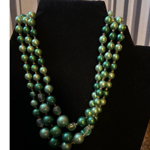 Style: Layered, Beaded, Statement Type: Necklace Theme: Bohemian Main Stone Color: Green Occasion: Birthday, Anniversary, Wedding, Mother's Day, Christmas Country of Origin: Japan Keywords: multi strand, faux pearl, green necklace, vintage jewelry, statement necklace, beaded necklace, elegant, classic, layered necklace, costume jewelry, gift for her