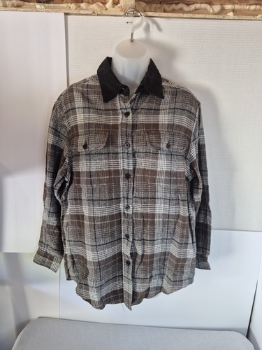 Size small mens brown flannel button down shirt with Courdoroy accents on the elbows and collar. 100% cotton its in excellent vintage condition. Please send offers. 📍Ships from SOUTH CAROLINA ‼️this is a vintage/pre-owned item sold as-is. no refunds. I inspect all pieces carefully but please note normal evidence of wear may go unmentioned. Please message me with any questions