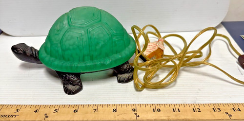 Made with brass and green glass materials, this turtle nightlight has an oval shade shape and emits a warm incandescent light. Light bulb NOT INCLUDED. Good Condition May Have scratches.