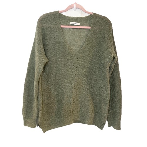 The RICCOVERO Luna Sweater in Sage Green is a luxurious V-neck pullover made from a mohair blend fabric. With a classic fit and tight-knit construction, this sweater is perfect for a variety of occasions including travel, parties, and casual wear.