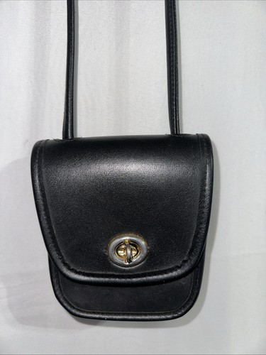The Coach Vintage Everett Mini Bag Leather Crossbody in Black is a stylish and versatile accessory perfect for various occasions. Crafted from high-quality leather with a solid rectangular shape, this mini bag features a turn lock closure and a black leather crossbody strap. The gold hardware adds a touch of elegance, making it suitable for travel, parties, casual outings, formal events, and business meetings. With its classic design and timeless appeal, this Coach bag is a must-have for any fashion-forward woman.