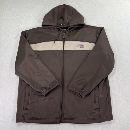Vintage Air Hoodie Mens L Brown Stripe Full Zip Fleece Lined Sweatshirt Y2K