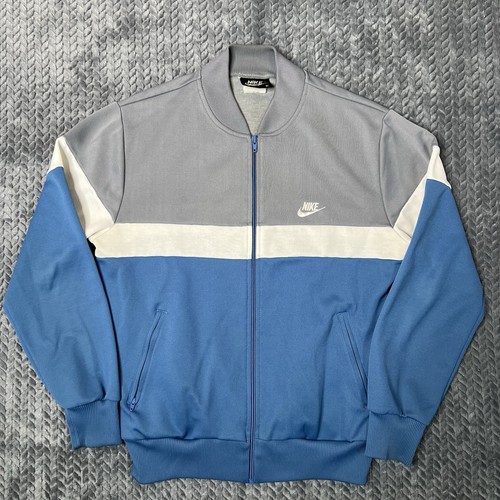 Vintage 80s Fleece Jacket Men’s Medium Basketball Full Zip Blue Gray Rare