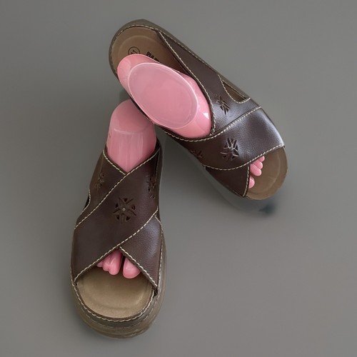 Y2K Vintage Faded Glory Brenda Chunky Platform Stud Flower Brown Sandals Size- 11 Condition- preowned with some dirt and creasing as well as some glue separating along inner sole as pictured. Nothing is lifting just visible separating that will require repair at some point. Please review photos carefully, item pictured is what will ship. Thank you for shopping with us!