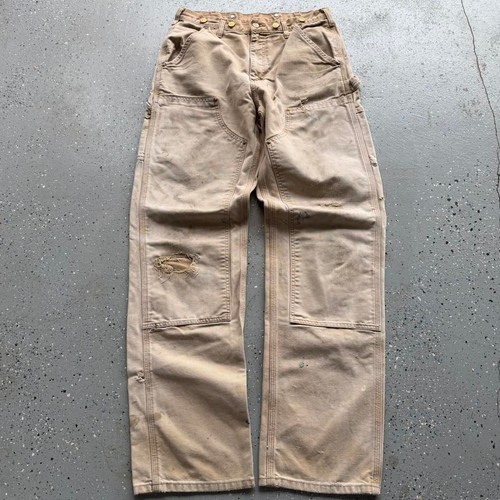 Vintage Carhartt B01 Distressed Faded Double Knee Duck Canvas Work Pants 32x33.5 Leg openings: “9 In.