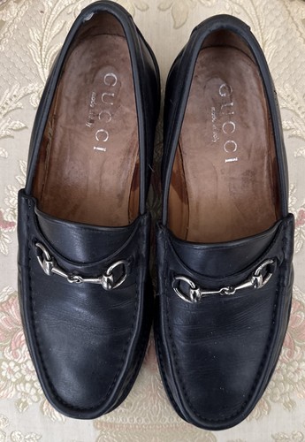 The Gucci Vintage Black Horsbit Loafers are a stylish and sophisticated choice for men. With a classic slip-on design, solid black color, and leather lining and upper material, these loafers exude luxury and elegance. The lug sole and chunky heel provide added style and comfort, making them perfect for formal occasions or everyday wear. Made in Italy by the prestigious brand Gucci, these vintage loafers are a timeless addition to any man's wardrobe, suitable for the summer, fall, and spring seasons. Please refer to the pictures for details and condition