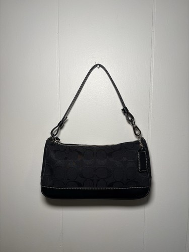 Vintage Demi Mini Shoulder Bag Black Signature Canvas Leather 6094 Y2K