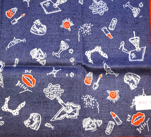 BETSEY HAS ALWAYS HAD A LOVE FOR JAPAN AND THE HARAJUKU GIRLS. Faux Denim Blue Jean. Hand Wash or Dry Clean. Square Shape. Fabric: I believe it is a Cotton Poly Blend. SUPER SUPER RARE HARD TO FIND!