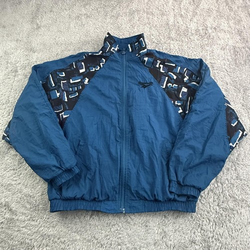 VINTAGE Jacket Mens Large Blue Black Windbreaker Full Zip Lined Retro 90s