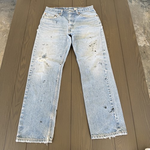 VTG Levis 505 Straight Fit Jeans Mens 30x30 Light Blue Grunge Distressed Denim