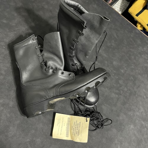 Features: Military-style combat boot silhouette, mildew and water resistant construction, lace-up speed lacing system, slip resistant rubber outsoles, and supportive mid-calf height suitable for workwear or tactical use.