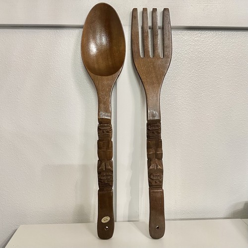 Some minor wear to fork. Otherwise in great shape. Solid wood. Unique Quality carved and great for display.